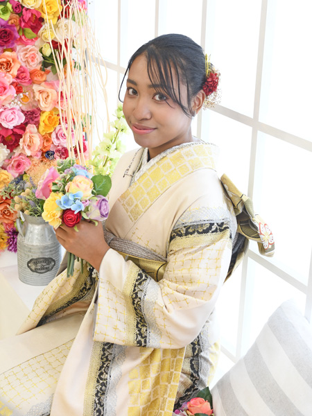 こんにちは。よくお似合いのお振袖をお選びいただきましたお嬢様をご紹介します!