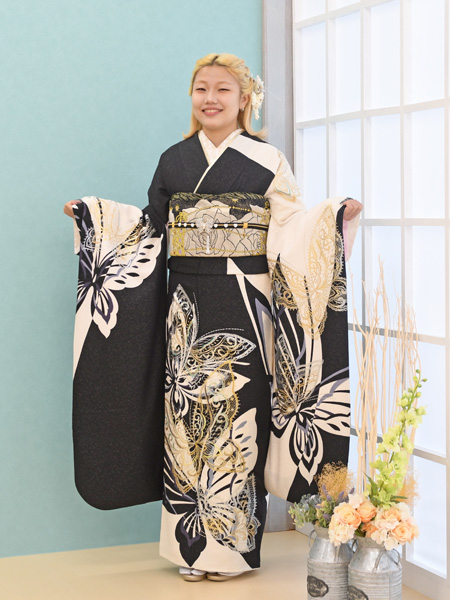 全身の写真はいかがでしょうか。帯締めにも蝶が付いているのはお気づきになりましたか( ⁎ᵕᴗᵕ⁎ )❤︎