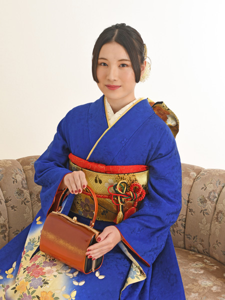 スタイルも立ち居振る舞いも素敵なお嬢様!帯の結びを高い位置で作りますと、お嬢様のスタイルの良さがより一層引き立ちますね ( ⁎ᵕᴗᵕ⁎ )❤︎